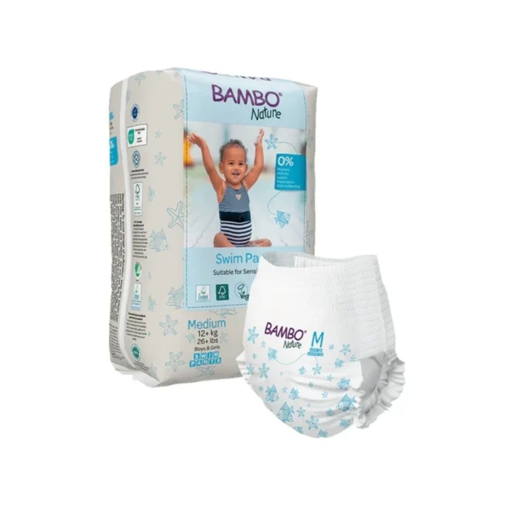 As fraldas de banho Bambo Nature Swim M são ideais para bebés com mais de 12 kg que adoram brincar na água. Desenvolvidas para proporcionar uma proteção eficaz contra fugas, mantêm o seu bebé confortável e seguro durante o banho ou atividades aquáticas.