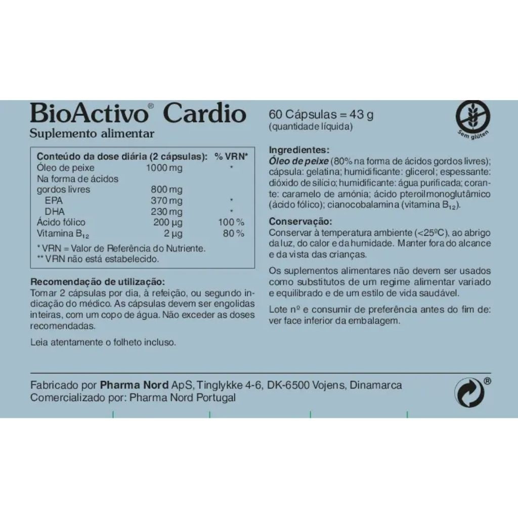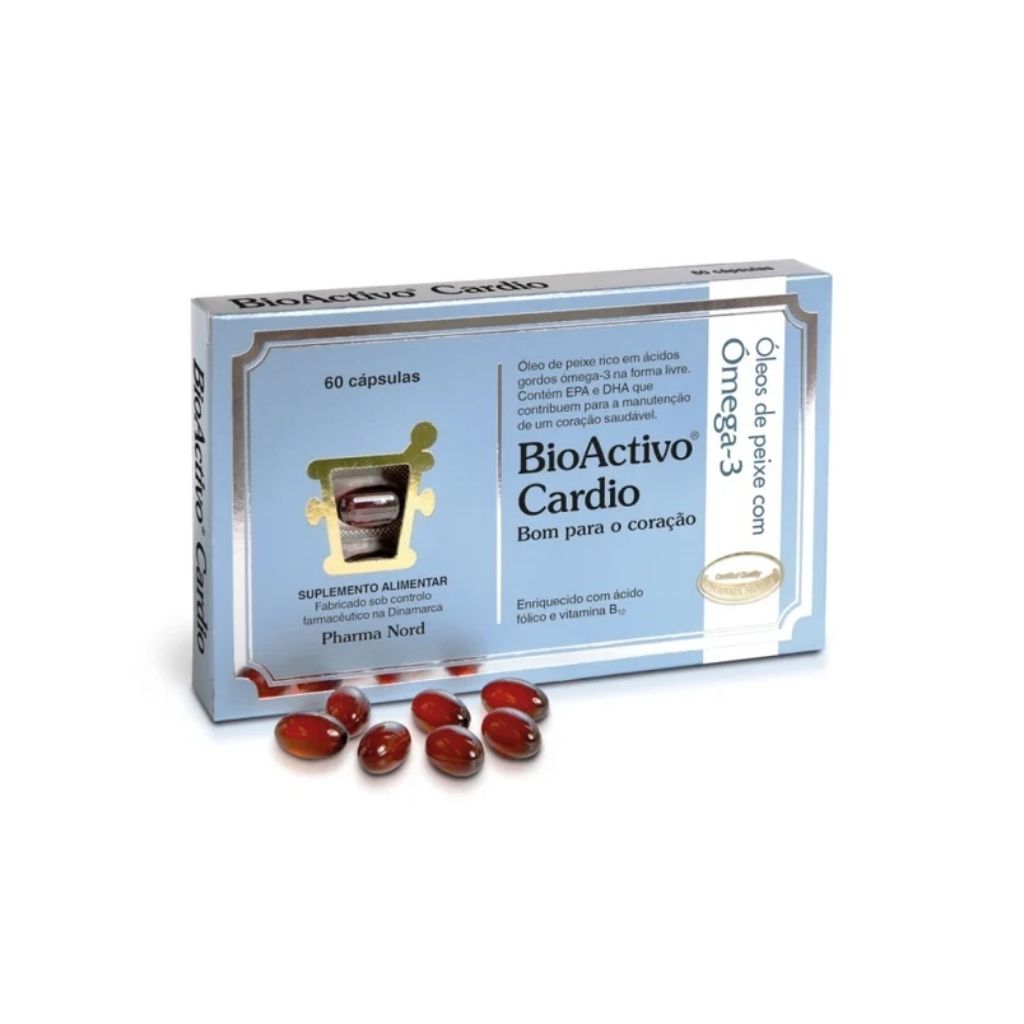 Bioactivo Cardio Cápsulas é um suplemento alimentar que contém EPA e DHA, ácidos gordos essenciais conhecidos pelo seu papel no suporte à saúde do coração. Esta fórmula foi desenvolvida para pessoas que desejam manter uma função cardiovascular saudável como parte da sua rotina diária.