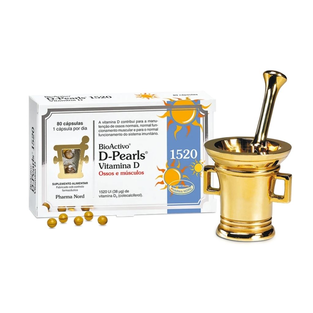 Bioactivo Vitamina D Cápsulas apresenta pequenas pérolas de gelatina mole que contêm vitamina D3 dissolvida em azeite extraído a frio, garantindo uma elevada absorção devido à solubilidade da vitamina em gordura.