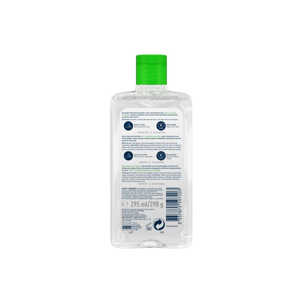 A Água Micelar Cerave foi desenvolvida com dermatologistas para todos os tipos de pele, combinando a eficácia na remoção de sujidade, oleosidade e maquilhagem com o cuidado e hidratação da pele. A sua fórmula inclui 3 ceramidas essenciais, niacinamida, glicerina, fitoesfingosina e colesterol, ingredientes que ajudam a restaurar e manter a barreira natural da pele enquanto apaziguam e hidratam.