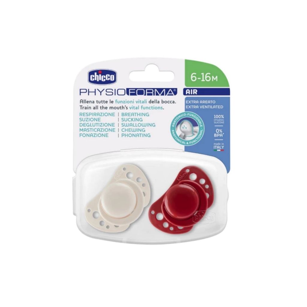 A Chupeta Physio Air da Chicco foi especialmente concebida para garantir o máximo conforto e saúde para o seu bebé. Com grandes orifícios de ventilação, permite que a pele do bebé respire livremente, ajudando a prevenir a acumulação de saliva e mantendo a zona da boca fresca e saudável.