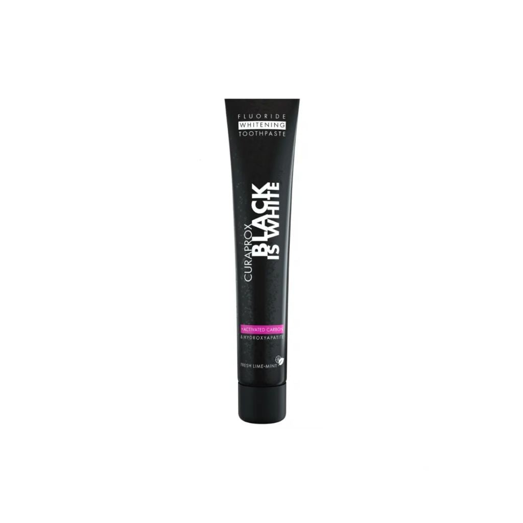 O Curaprox B&W Kit inclui uma pasta dentífrica branqueadora de 90ml com sabor fresco de lima-menta, que ajuda a remover as manchas e a fortalecer o esmalte dos dentes. A fórmula contém carvão ativado, que absorve as substâncias que causam alterações na cor dos dentes, e hidroxiapatite (HAP), que contribui para o fortalecimento do esmalte, promovendo um sorriso mais branco e saudável.