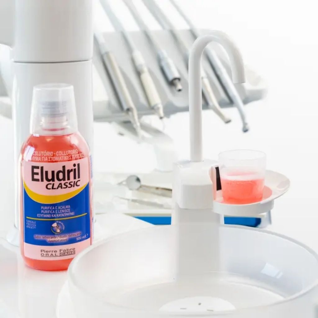 Eludril Classic é um colutório que combina clorohexidina, conhecida pela sua ação purificante e anti-placa bacteriana, com clorobutanol, que proporciona uma ação calmante. Este produto é especialmente recomendado para complementar tratamentos periodontais ou implantares, contribuindo para uma higiene oral mais eficaz.