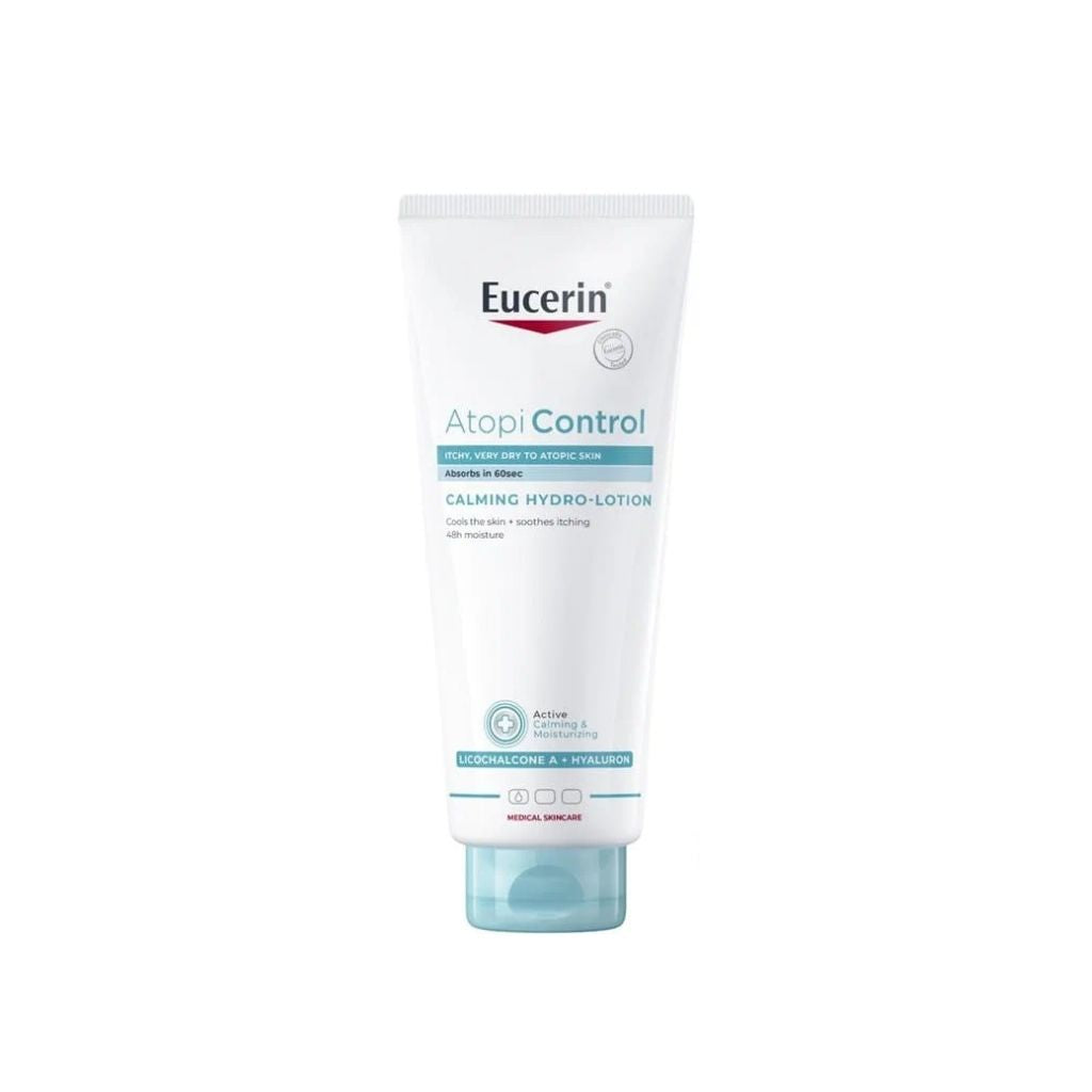 Eucerin AtopiControl Hidro-Loção Apaziguante é uma loção sem fragrância, especialmente formulada para peles atópicas, que alivia o prurido e promove uma hidratação prolongada até 48 horas. A sua textura ultra-leve é rapidamente absorvida, refrescando a pele sem deixar sensação pegajosa.