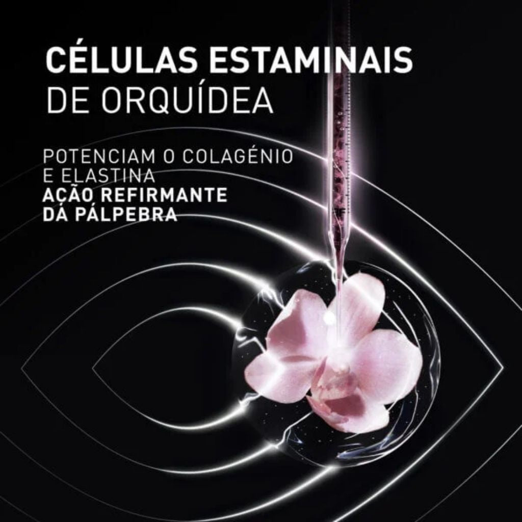 Este creme inclui um complexo lifting e peptídeos que ajudam a melhorar o volume das pestanas e a combater a flacidez das pálpebras superiores. Para além disso, contém componentes que atuam na redução das olheiras e manchas escuras, promovendo um efeito de luminosidade e uniformização da pele.