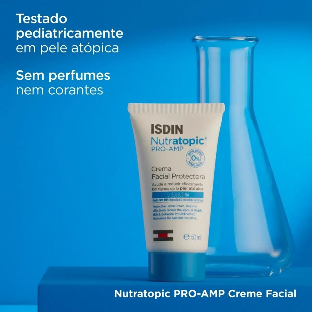 O ISDIN Nutratopic Creme Facial foi desenvolvido para a prevenção e cuidado da pele atópica facial, especialmente em crianças a partir dos 5 meses. Este creme ajuda a reduzir os principais sintomas visíveis da dermatite atópica, como prurido, vermelhidão, descamação e reatividade cutânea.