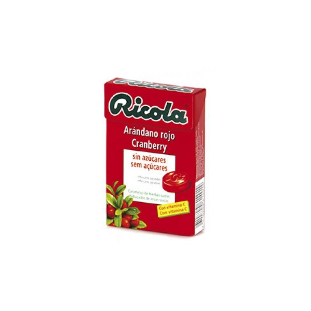 Rebuçados Ricola com sabor a arando vermelho, ideais para quem procura um doce reconfortante e saboroso.